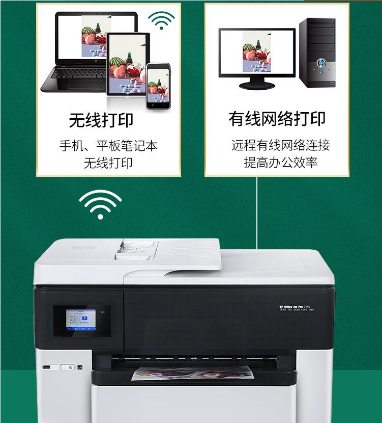惠普A3彩色照片打印機復印一體機7740噴墨自動雙面A4辦公家用無線